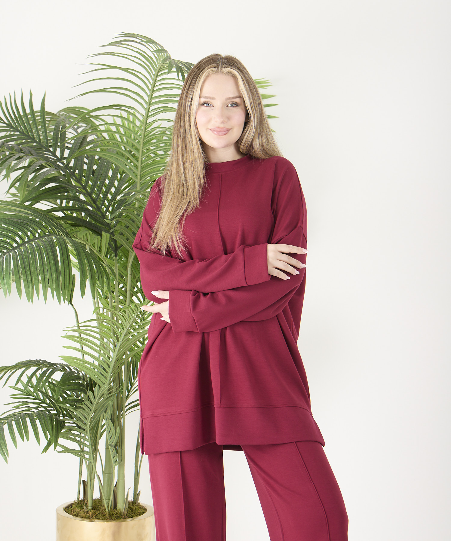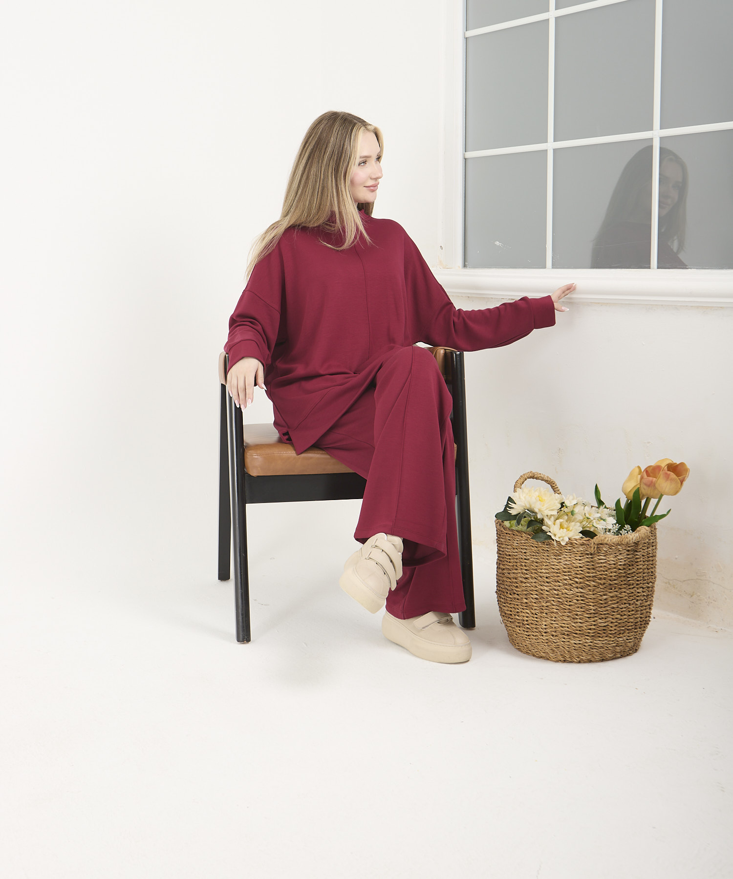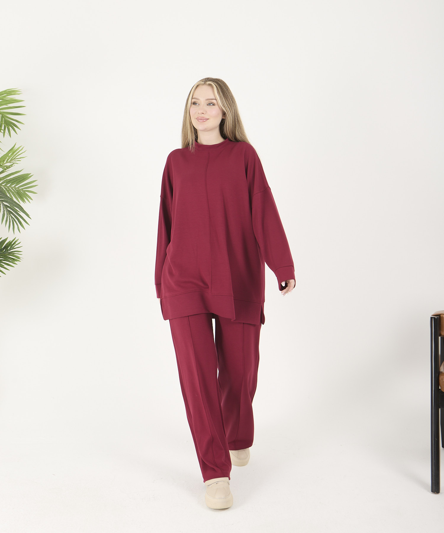 ÜRÜN ADI: Bordo Oyso Pantolonlu Takım