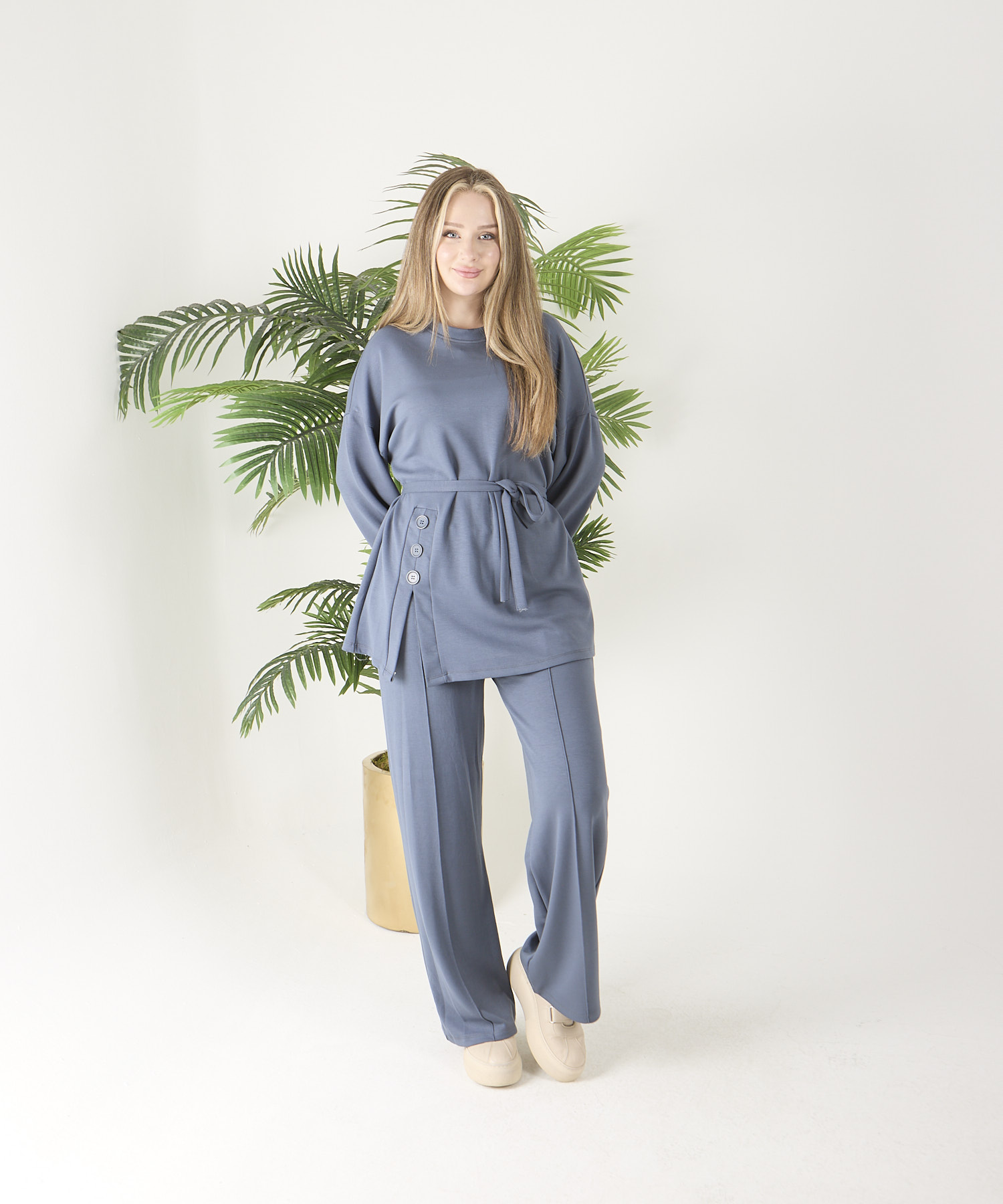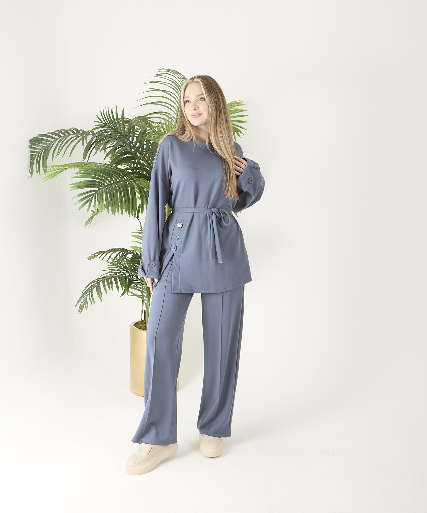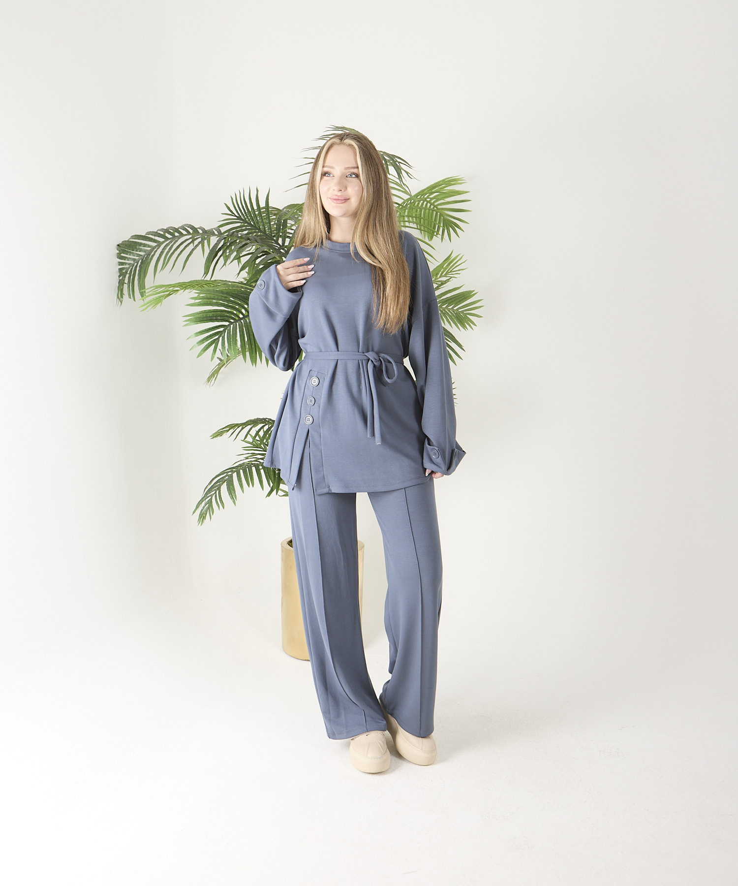 ÜRÜN ADI: Gri Düğmeli Oyso Pantolonlu Takım