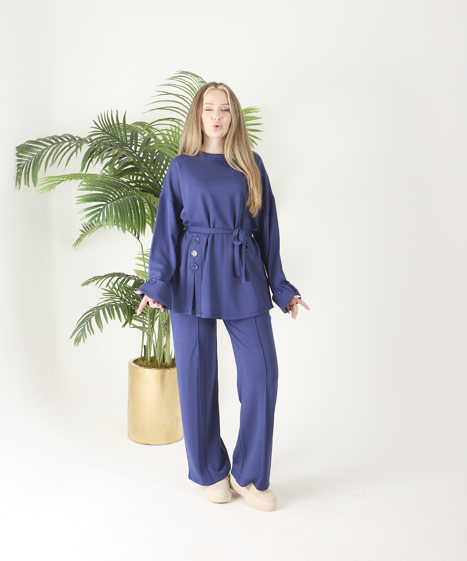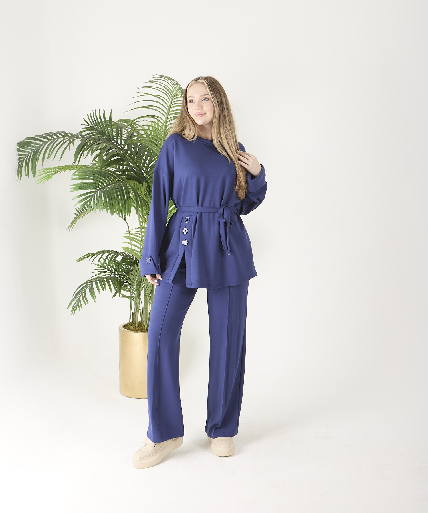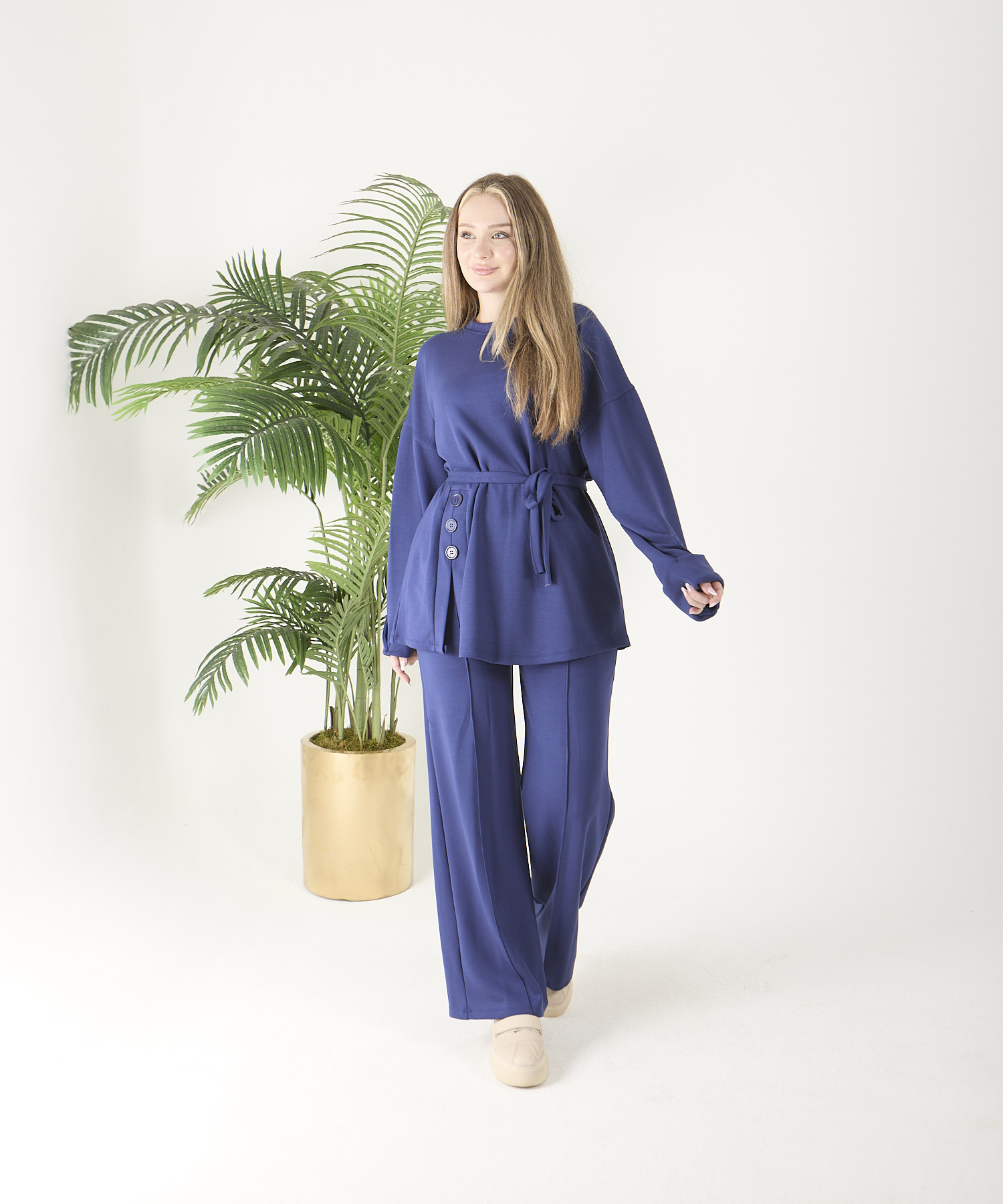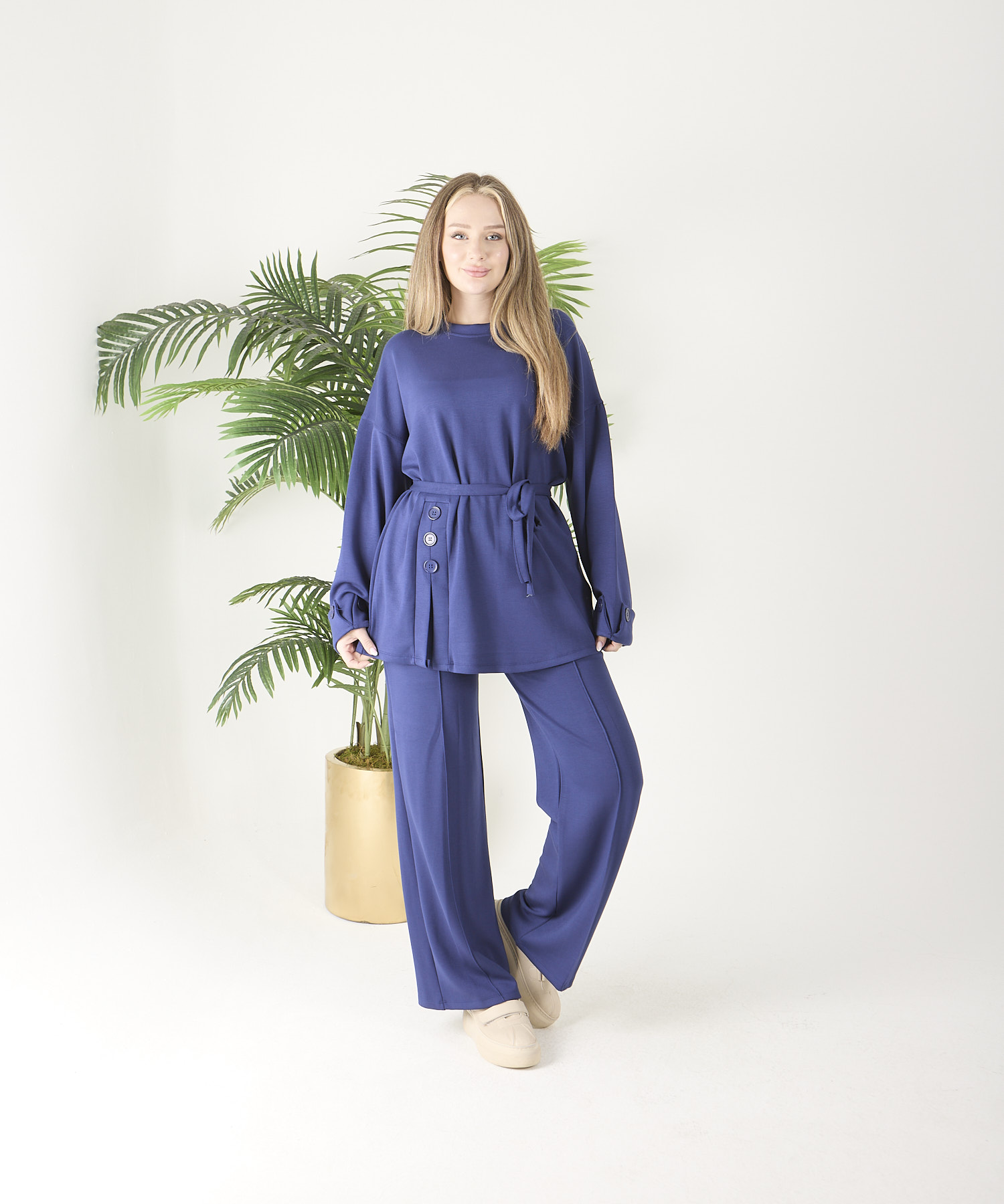 ÜRÜN ADI: Saks Mavisi Düğmeli Oyso Pantolonlu Takım