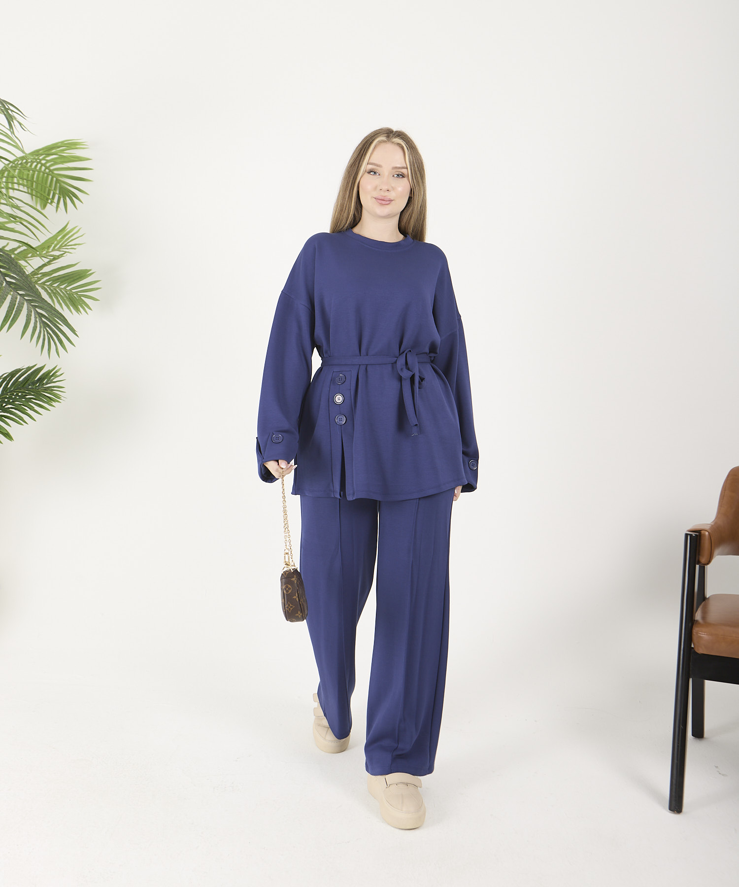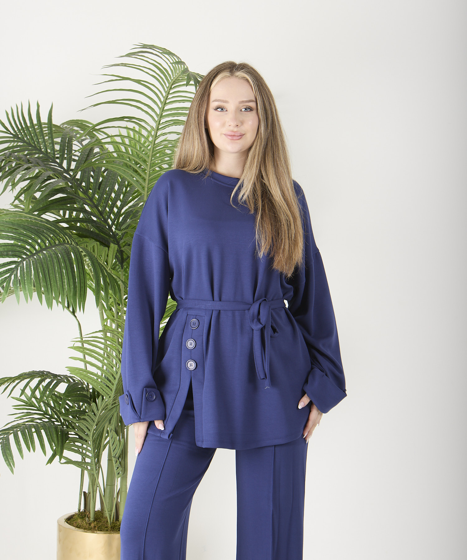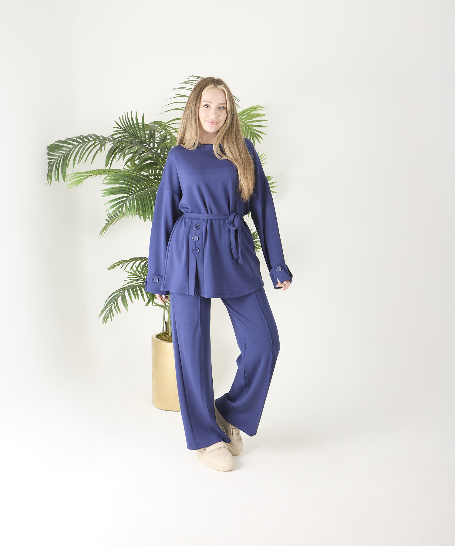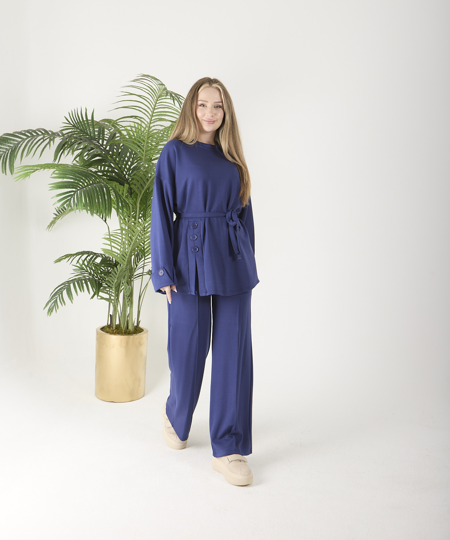 ÜRÜN ADI: Saks Mavisi Düğmeli Oyso Pantolonlu Takım
